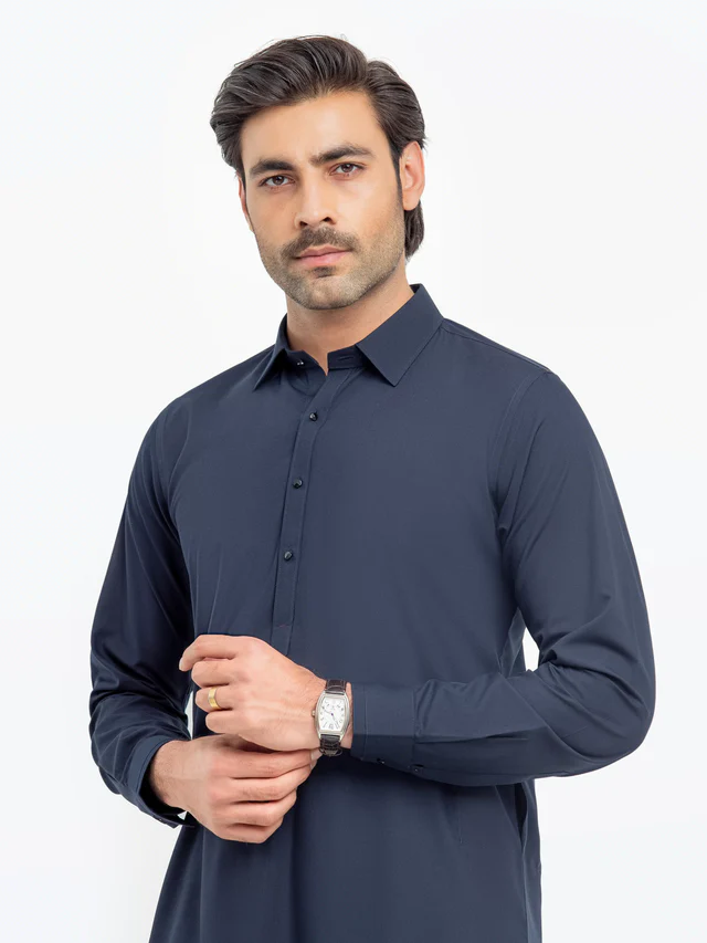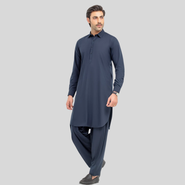 Men’s tailored fit kurta shalwar crafted from premium blended fabric, offering a sleek look with comfort and durability.