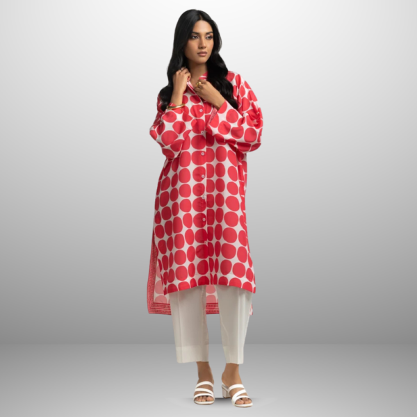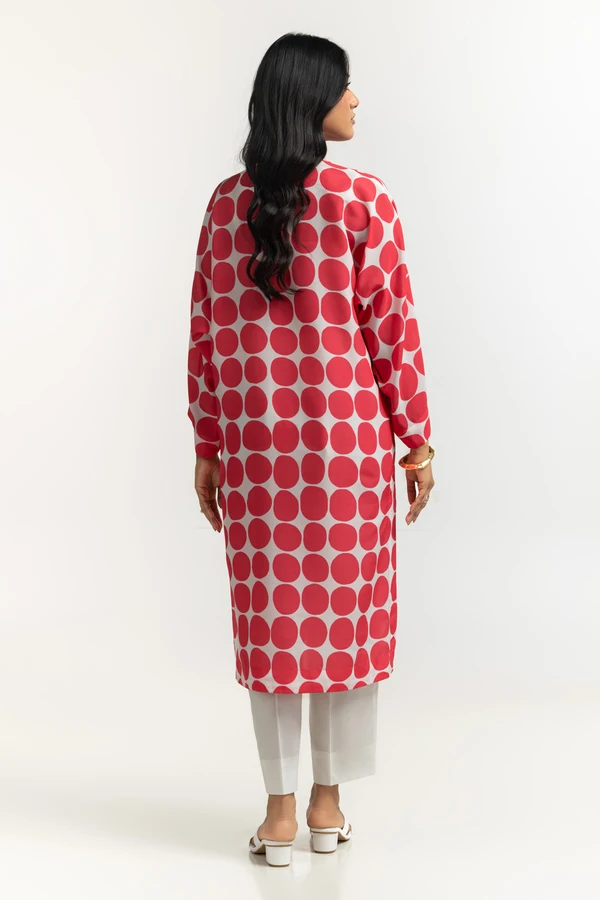 Details: Polka Dot printed shirt with Round – Neckline and front-open design